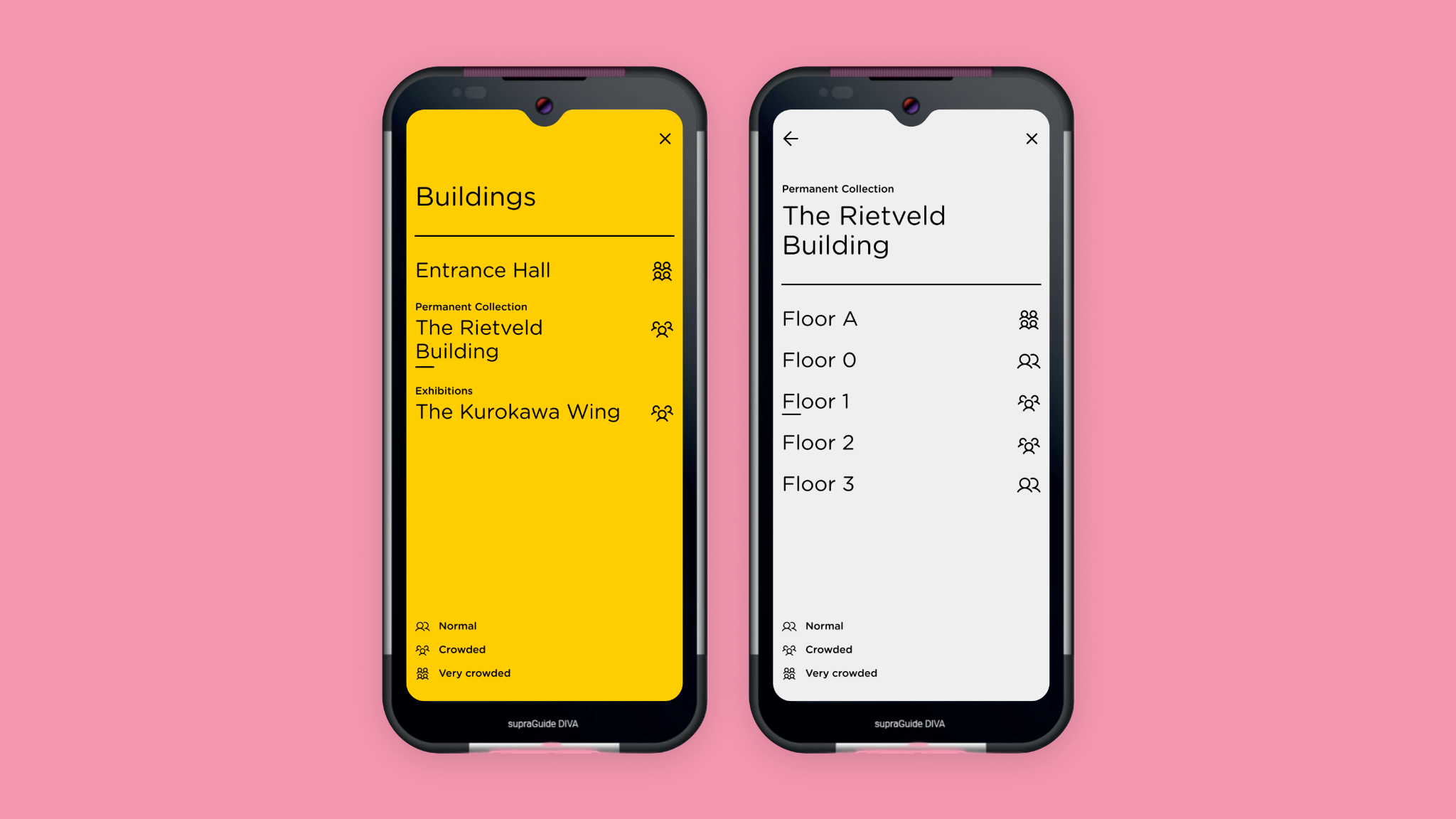 We continue the recognizable visual system of the digital products and further expand it for use within the museum.